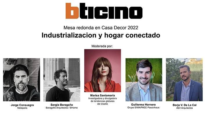 Bticino reúne el día 19 de mayo, a las 9:30 de la mañana, en el Auditorio de Casa Decor, a cuatro arquitectos expertos en industrialización para debatir sobre las posibilidades que ofrecen las soluciones del hogar conectado en esta tipología de construcción.
