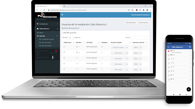 A la hora de programarlo, ofrece un inmenso abanico de posibilidades. Con Microaccess se puede, desde dar de alta a los usuarios en el propio equipo, hasta utilizar el sistema de gestión basado en la nube Microaccess. Con este sistema todos los miembros de tu empresa podrán acceder a los datos de las comunidades y gestionar de forma remota con el PC o el teléfono móvil los llaveros de los vecinos. Sólo con el sistema de gestión de Microaccess se podrá dar un servicio de mantenimiento completo a las comunidades.