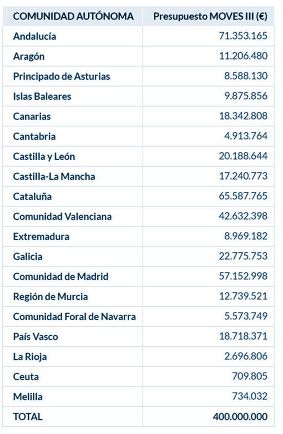 El presupuesto de MOVES III, que se podrá seguir reforzando en futuros ejercicios, cuenta con una dotación mínima de 400 millones de euros ampliables, al menos, a 800.