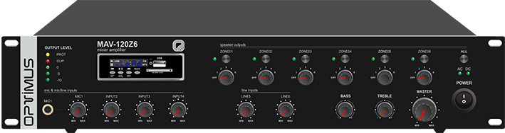 - Amplificadores de 120, 240 W y 500 W con 6 zonas y fuente musical incorporada MAV-120Z6, MAV-240Z6 y MAV-500Z6