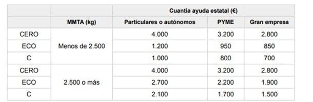 • CERO, ECO, C: clasificación del vehículo en el Registro de Vehículos de la DGT